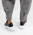 Το παντελόνι με λάστιχο στην μέση και oversized γραμμή ολοκληρώνουν οι διπλές πιέτες στο επάνω μέρος και το ιδιαίτερο τελείωμα με πιέτες στο μπατζάκι.