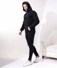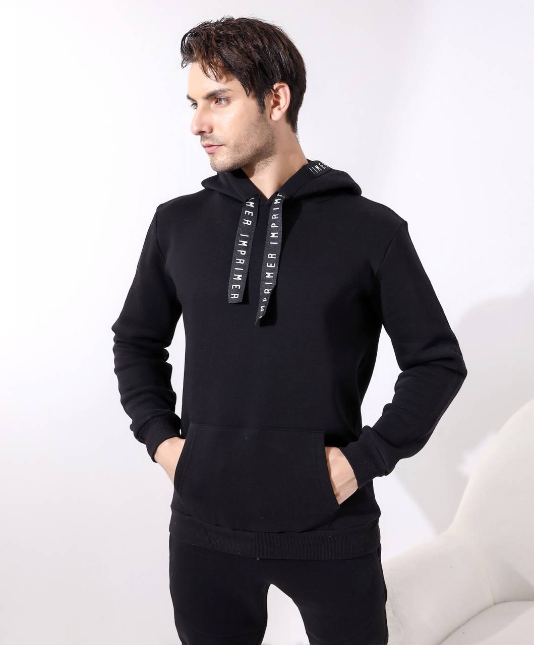 Black sweatshirt with a hood and a special cord on the hood100% Cotton
