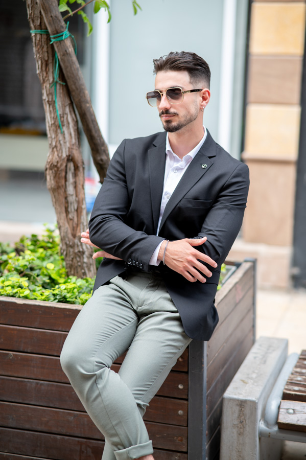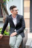 Black-Mint SuitThe suit consists of mint pants, a white shirt and a black jacket.