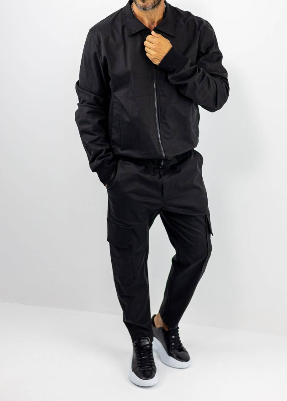 BLACK SETDenim set with cargo pants and jacket with zipper in black color from the company twin black.