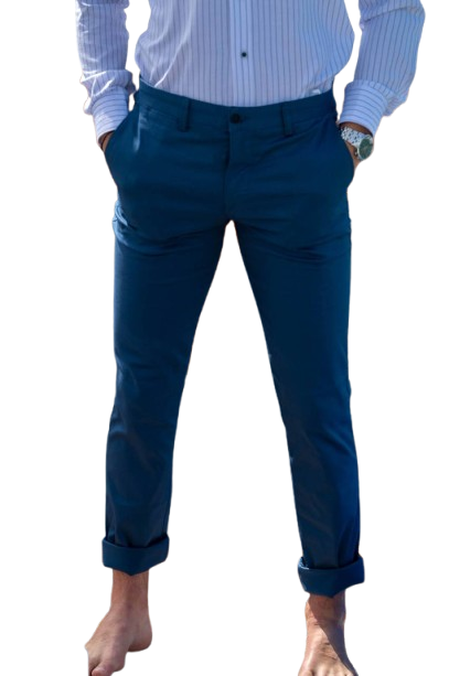 Suit pants from the company ENDESON in blue color ruff and lineslim fit.It has flaps on the back pockets.97% Cotton 3% Lycra